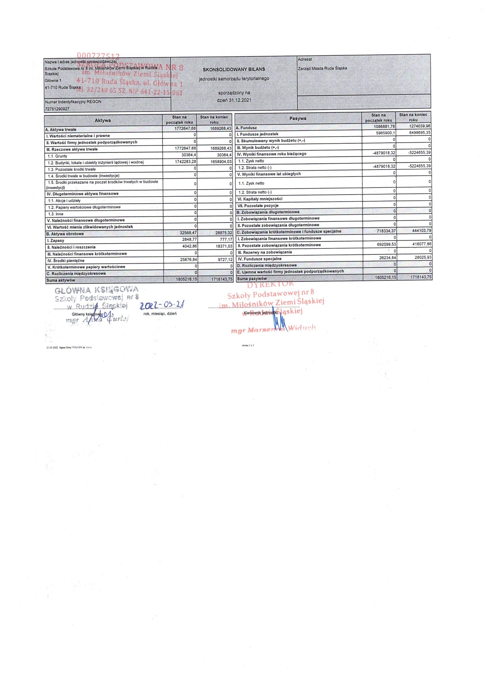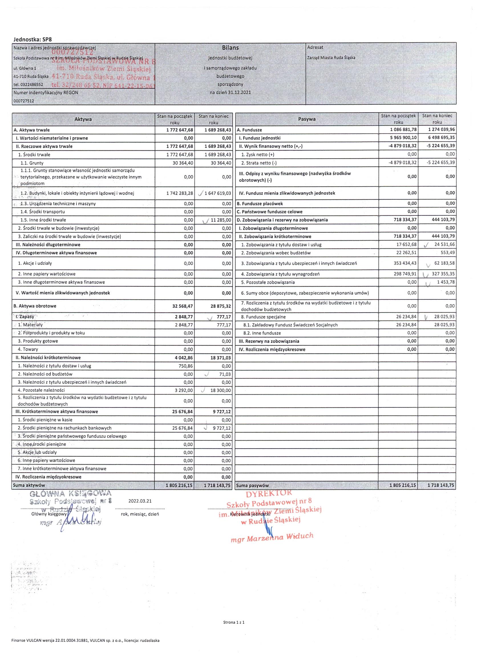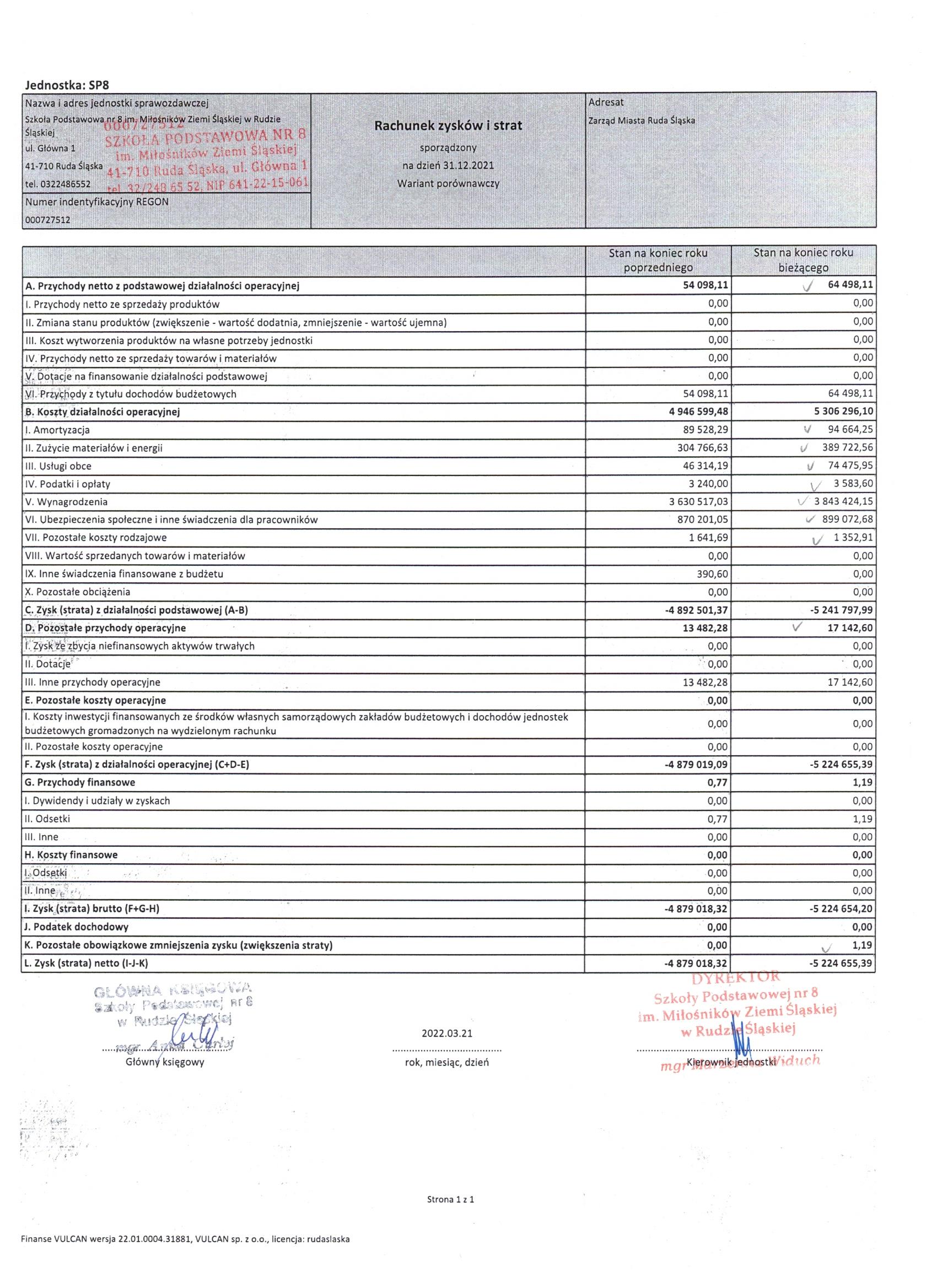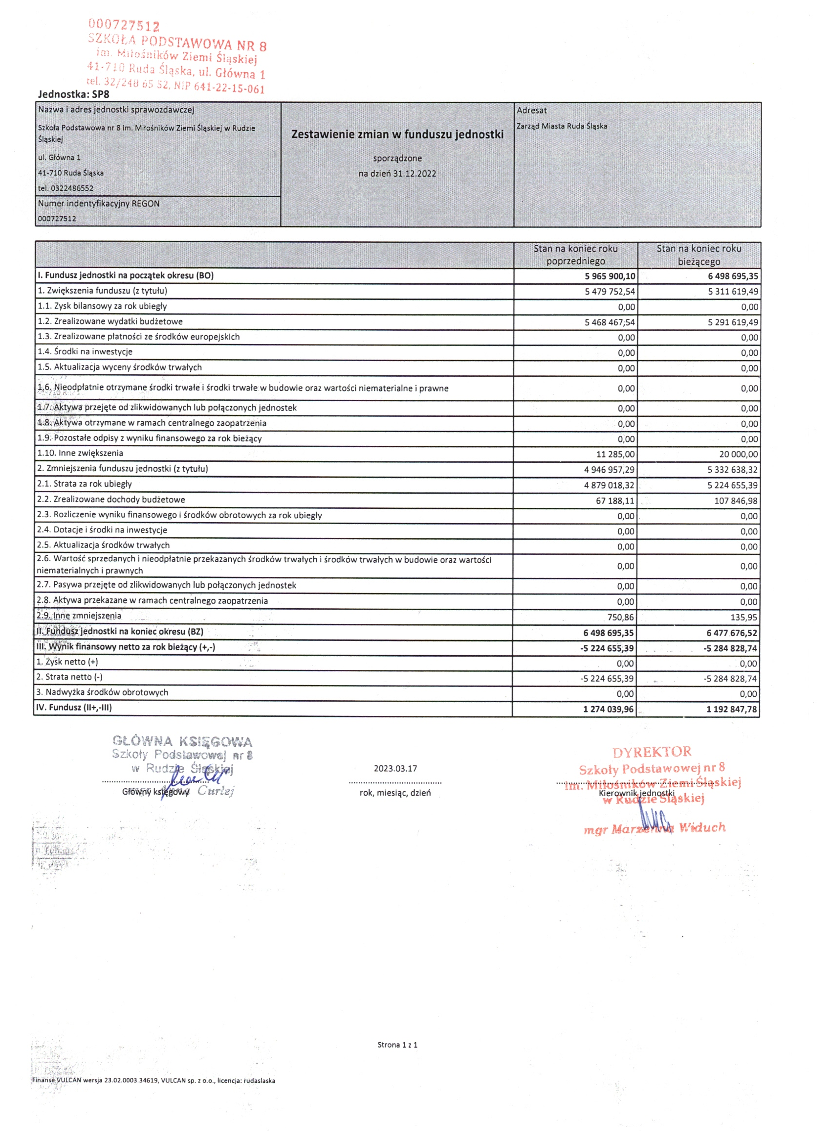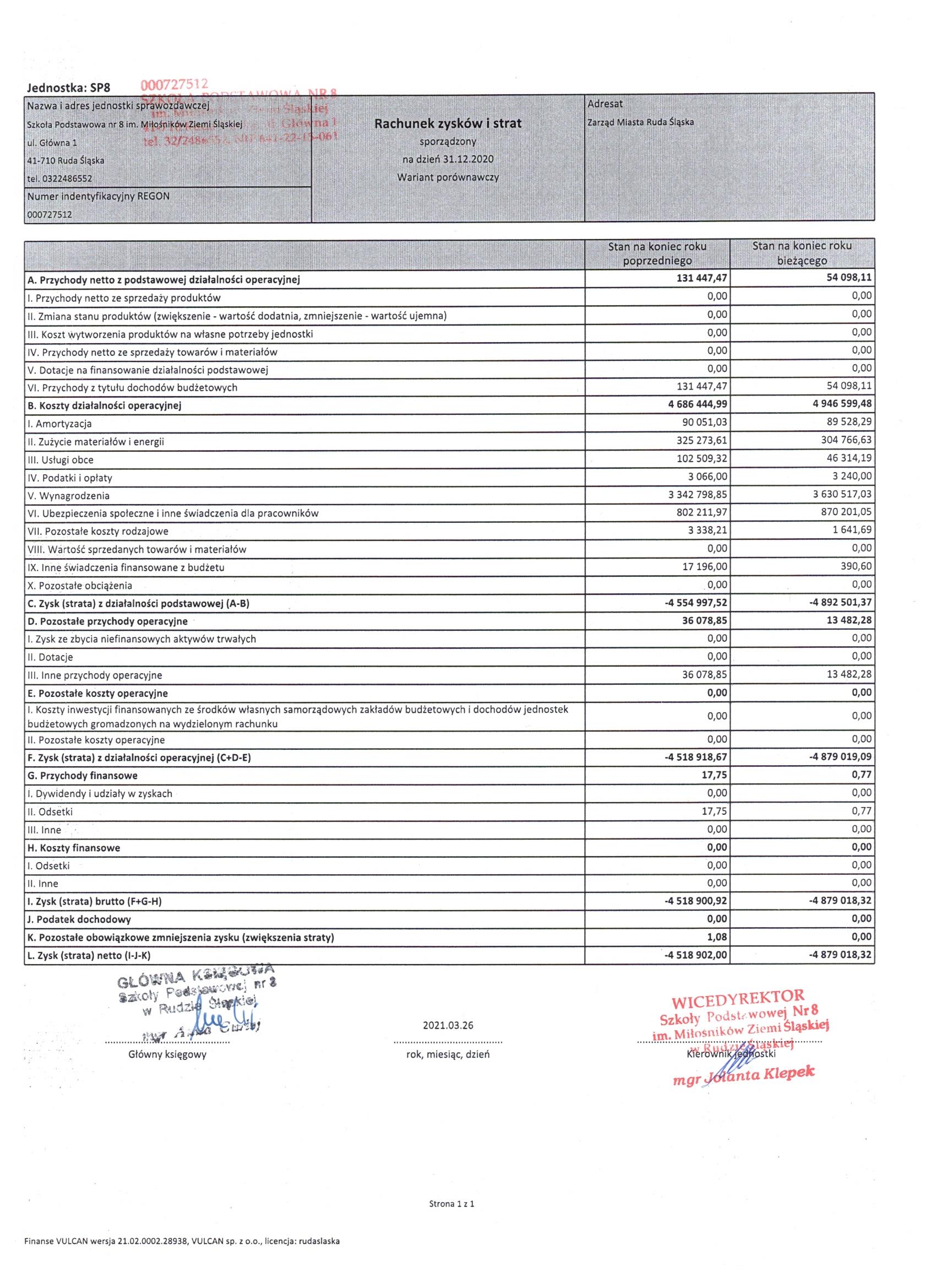 Sprawozdanie finansowe za 2023 r.Utworzono: 09 maj 2024 | Poprawiono: 09 maj 2024 | Opublikowano: 09 maj 2024 | Jolanta Klepek | Drukuj | E-mail | Odsłony: 539 Sprawozdanie finansowe za 2023 r. (...) Załączniki: Skan_20240508.pdf[ ]4231 kB2024-05-09 18:25 Skan_20240508 (2).pdf[ ]4029 kB2024-05-09 18:25 Skan_20240508 (3).pdf[ ]3605 kB2024-05-09 18:25 Skan_20240508 (4).pdf[ ]2697 kB2024-05-09 18:25 Informacja dodatkowa__Szkoła Podstawowa Nr 8.pdf[ ]344 kB2024-05-09 18:26