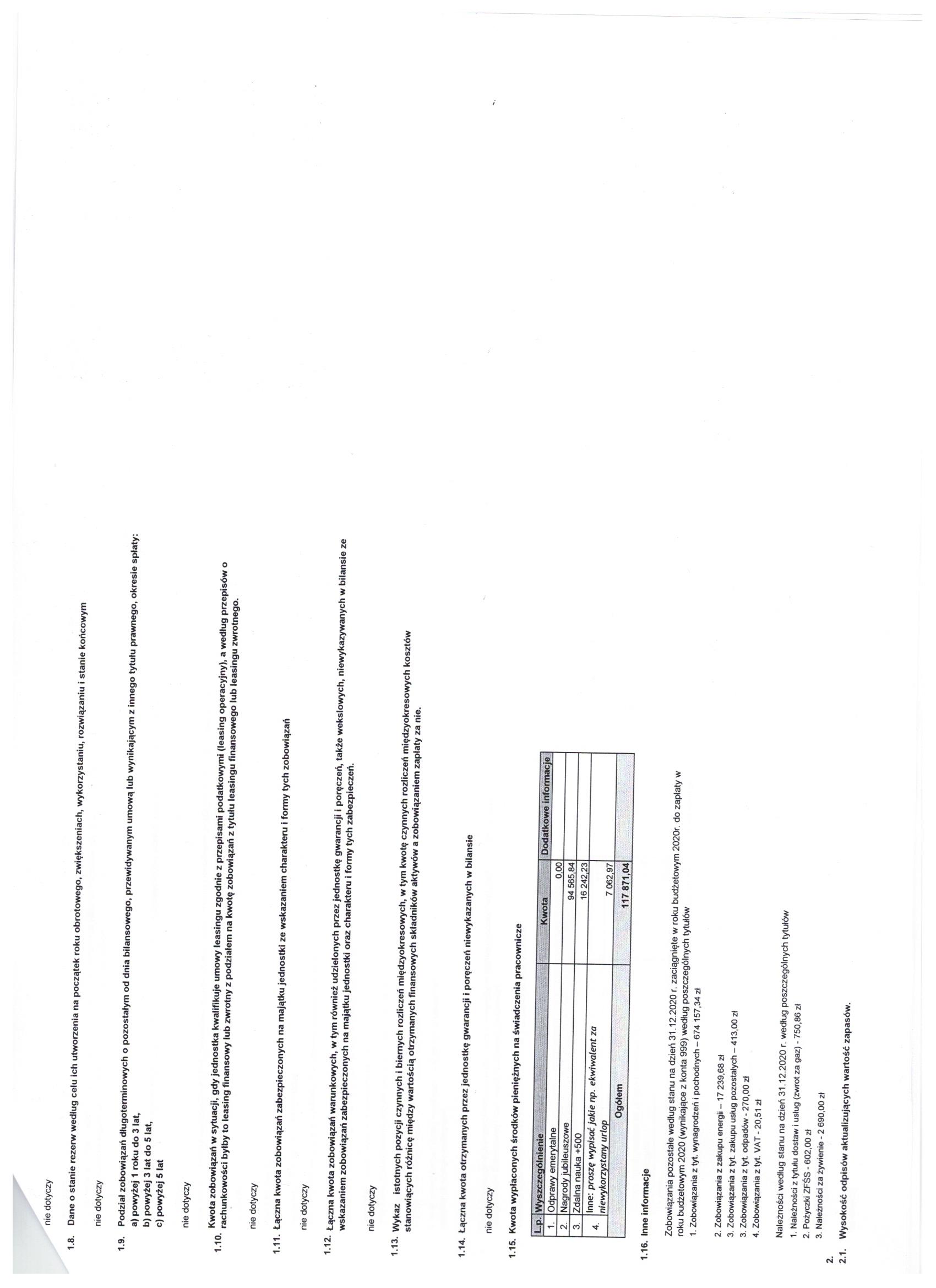 Sprawozdanie finansowe za 2020 rokUtworzono: 30 kwiecień 2021 | Poprawiono: 09 maj 2021 | Opublikowano: 30 kwiecień 2021 | Anna Curlej | Drukuj | E-mail | Odsłony: 1135 Sprawozdanie finansowe za 2019 rok (...) Załączniki: Bilans.jpeg[ ]549 kB2021-05-09 10:23 inf dod 1.jpeg[ ]351 kB2021-05-09 10:23 inf dod 2.jpeg[ ]228 kB2021-05-09 10:23 inf dod 3.jpeg[ ]203 kB2021-05-09 10:23 inf dod 4.jpeg[ ]94 kB2021-05-09 10:24 informacja dodatkowa.jpeg[ ]291 kB2021-05-09 10:24 Rachunek zysków i strat.jpeg[ ]500 kB2021-05-09 10:24 Skonsolidowany bilans.jpeg[ ]340 kB2021-05-09 10:24 Zestawienie zmian.jpeg[ ]449 kB2021-05-09 10:24
